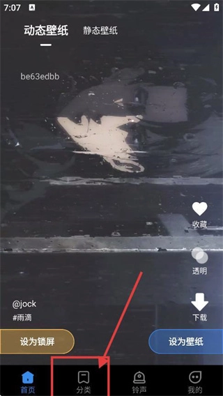 进入该界面后,可在【动态壁纸】与【静态壁纸】选项间切换,找到带有【be63edbb】标识的壁纸,点击底部的【分类】按钮即可进入分类页面。