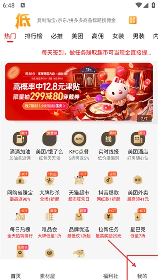 1、在“趣折宝”首页,点击底部导航栏的【我的】按钮,即可进入个人中心页面。
