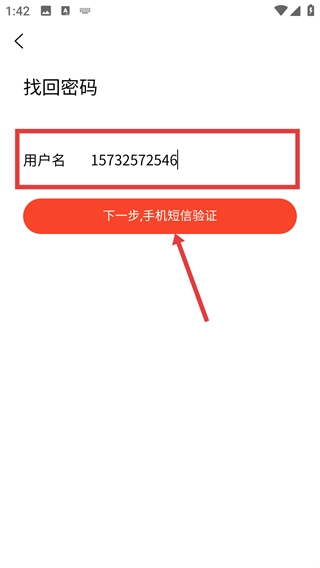 4、进入找回密码页面后,输入对应的用户名,接着点击“下一步,短信验证”按钮,以此推进密码找回的验证流程。
