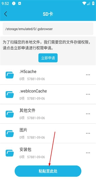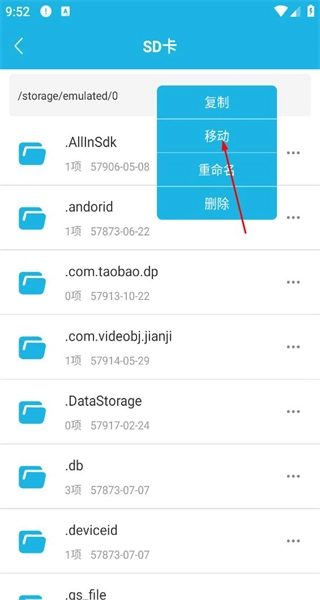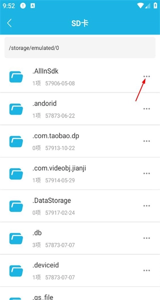 2、进入SD卡页面后,浏览页面上展示的文件与文件夹,找到目标文件夹并点击其右侧的功能按钮。