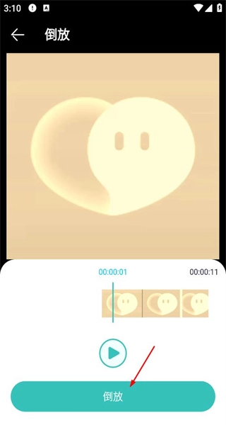 3、进入倒放编辑界面,查看视频的预览效果,点击界面底部的倒放按钮,完成视频倒放的操作。