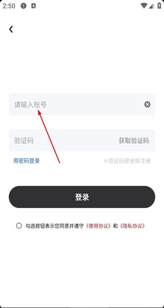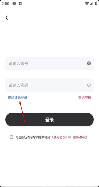 3、进入登录页面后,找到账号密码输入框,点击“用验证码登录”选项,即可切换至验证码登录模式。