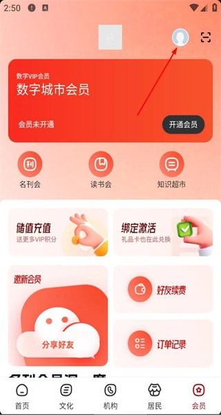 1、启动软件后,进入会员界面,可看到会员服务、储值充值等功能选项,点击个人中心入口,即可进入登录相关页面。