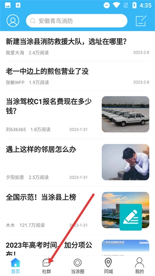 1、在首页点击底部导航栏中的“社群”选项,即可进入社群页面。