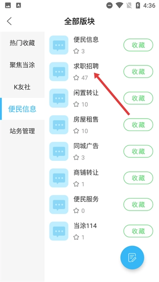 3、在所有版块的列表里,找到并选择“求职招聘”版块,即可进入当涂OK人才网页面。