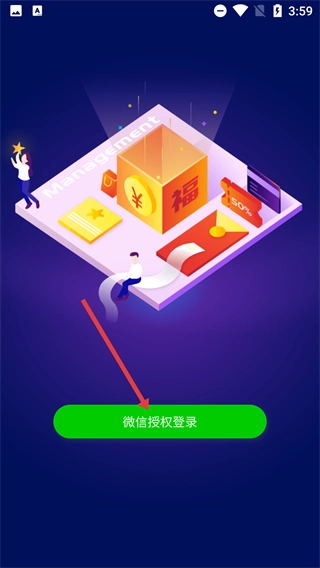 2、在应用界面里点击“微信授权登录”按钮,借助微信授权来完成账号登录的操作。