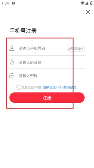 4、进入【账号注册】页面后,按顺序填写【号码】、【验证码】和【密码】,随后点击【注册】按钮,即可完成账号注册流程。