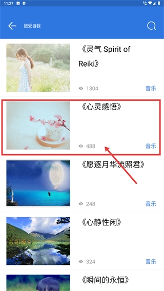 3、找到【接受自我】这个音乐列表,点击《心灵感悟》这类曲目,进入对应的音乐播放界面,就能开始聆听并调节情绪了。