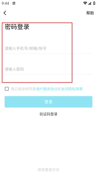 3、切换至【密码登录】界面,输入【号/邮箱/账号】与【密码】,勾选相关协议后,点击【登录】按钮完成操作。