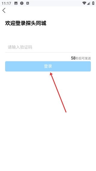 3、在验证码填写页面输入收到的验证码,点击【登录】按钮,即可完成“探头同城”的账号登录操作。
