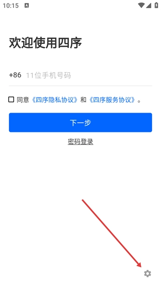 1、在四序的登录页面,先输入以+86开头的11位号码,勾选相关协议后点击【下一步】;此外,也可以选择密码登录的方式。