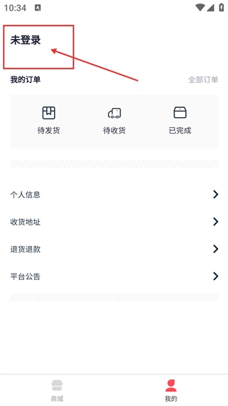 3、当处于【未登录】状态时,【我的订单】等功能暂时无法使用,需要完成登录操作来解锁相关权限。