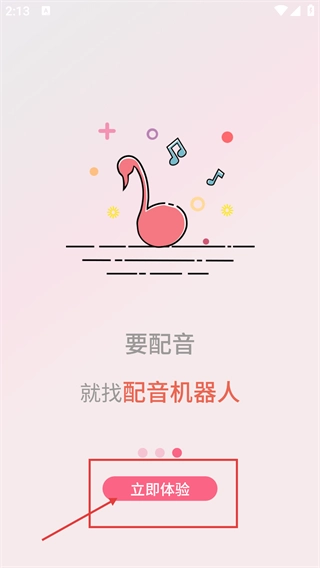 2、进入【配音机器人】引导页后,界面会显示“要配音就找配音机器人”的提示语,点击页面上的【立即体验】按钮,即可进入登录选择界面。