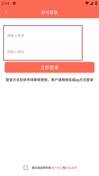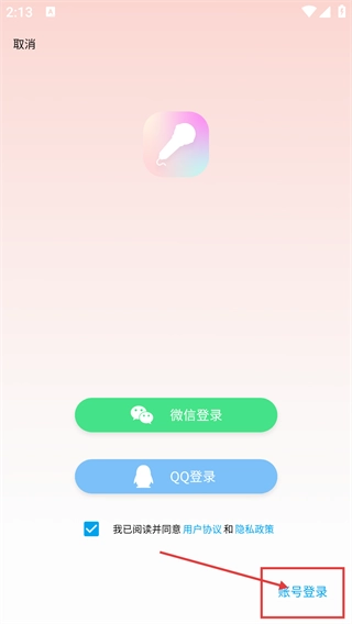 3、在登录选择界面,除了【微信登录】和【QQ登录】这两个选项外,点击【账号登录】选项,就能进入账号密码登录的界面。