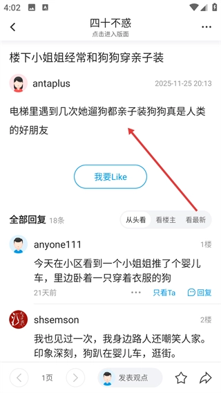 4、进入文章详情页后,用户可以查看具体内容,点击【我要Like】按钮进行互动,也能浏览所有回复并参与讨论。