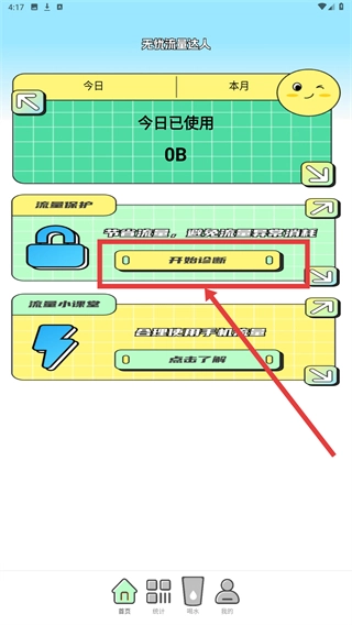 1、进入流量管理页面后,点击【开始检测】按钮,即可启动流量保护的检测流程,该流程能够对流量消耗情况进行优化。