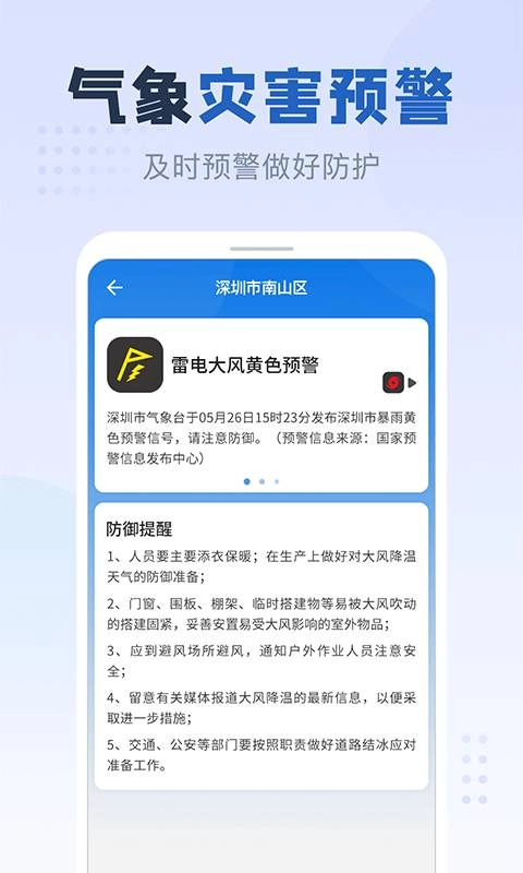 3、异常天气及时提醒,助力预防气象灾害,提前做好防范,为生活增添一份保障。