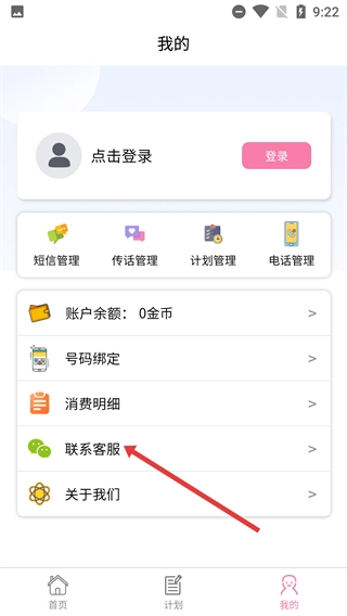 3、在【我的】页面,你可以通过【点击登录】区域完成账号登录,还能找到【联系客服】等功能入口来处理相关问题。