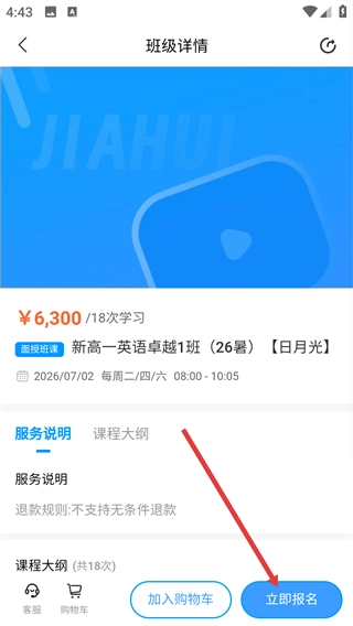 3、在班级详情页面查看课程价格、时间等相关信息后,点击【立即报名】按钮,即可进入学员信息填写环节。