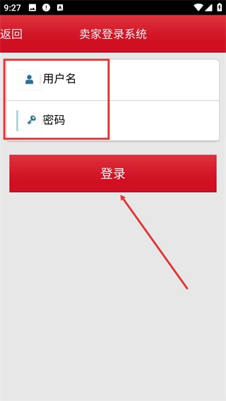 1、先在【用户名】和【密码】输入框中填写对应的账号信息,最后点击红色的【登录】按钮,就能完成卖家身份的系统登录。