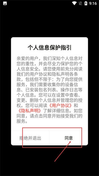 1、当出现【个人信息保护指引】弹窗时,需仔细阅读【用户协议】与【隐私声明】,随后点击【同意】按钮,完成此步骤后即可继续使用软件服务。