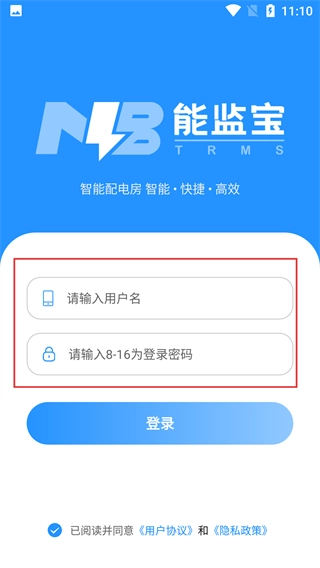 2、进入能监宝的登录界面后,要按顺序填写“请输入用户名”和“请输入8-16位登录密码”,再点击登录按钮,即可完成登录操作。