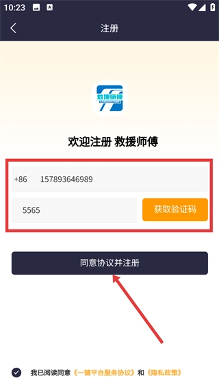 3、进入注册界面后,填写【号】,获取并输入【验证码】,勾选相关协议,再点击【同意协议并注册】按钮,即可完成账号创建。
