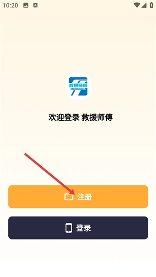 2、进入“救援师傅”登录界面后,点击【注册】按钮,即可开启新用户的账号注册流程。
