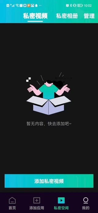 4、在私密空间页面添加私密视频,并对各类私密信息进行管理。