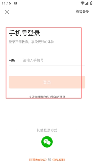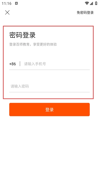 3、登录页支持切换至【密码登录】模式,输入账号与密码后点击【登录】按钮即可完成登录;同时,页面右上角设有切换选项,可随时切换回免密码登录方式。
