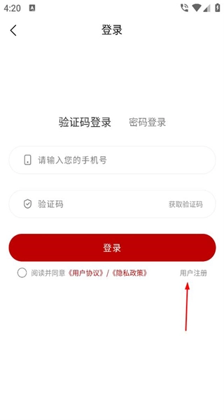 3、进入登录页面后,可选择验证码登录或密码登录两种方式,填写相关信息并勾选协议,随后点击登录按钮即可完成登录操作。