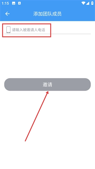 4、进入号码填写界面后,输入被邀请人的电话号码,输入完成后点击【邀请】按钮,即可发送团队成员邀请。