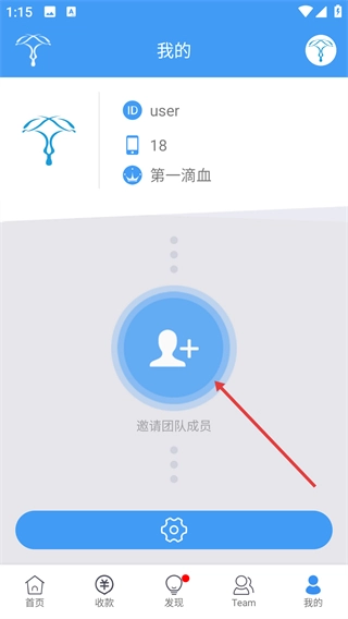 1、进入【我的】页面后,点击【邀请团队成员】按钮,即可进入邀请相关的操作界面。