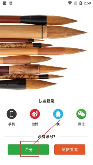 3、在登录选择页面,要是还没有账号,点击【注册】按钮就能进入注册流程,也可以选择【随便看看】直接浏览应用里的内容。