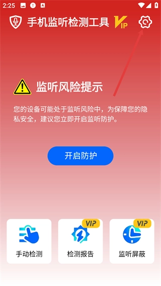 1、在【监听检测工具】的主界面中,点击右上角的齿轮形状图标。