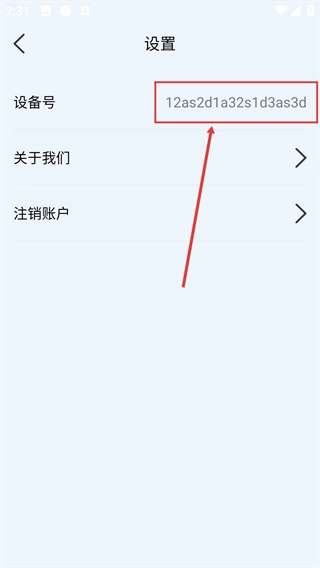 2、进入【设置】页面,就能看到当前设备对应的【设备号】。