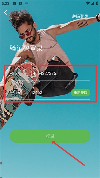 3、进入【验证码登录】界面后,填写【号】和已获取的【验证码】,接着点击【登录】按钮,即可完成账号登录操作。