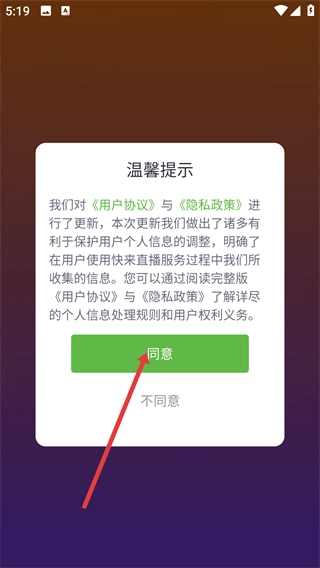 1、仔细阅读【用户协议】与【隐私政策】的更新内容说明后,点击【同意】按钮,就能继续使用本应用提供的各项服务。