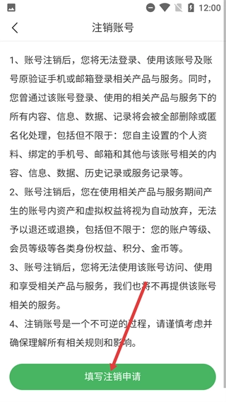 4、进入【注销账号】页面后,需了解注销后账号数据和资产将失效且该流程不可逆转,确认无误后即可填写注销申请。