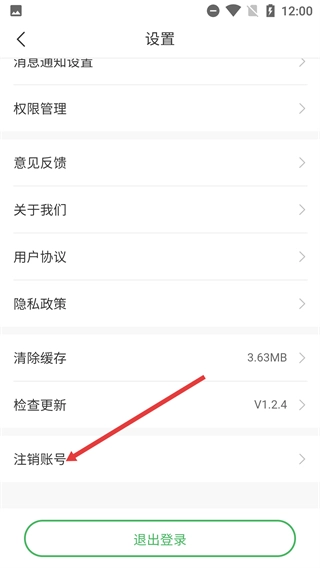 3、在【设置】页面,你可以对【消息通知设置】【权限管理】等功能进行操作,同时也能找到【注销账号】这一选项。