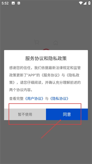 1、在【服务协议和隐私政策】弹窗里,仔细阅读【服务协议】与【隐私政策】的内容后,点击【同意】按钮,就能进入后续的服务流程。