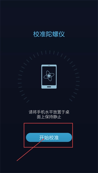 1、在【校准陀螺仪】页面,将设备水平放置于桌面并保持静止,然后点击【开始校准】按钮,启动陀螺仪的校准流程。