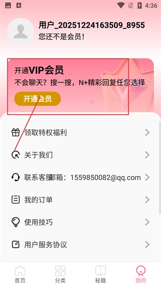 3、在【我的】页面里,点击【开通会员】板块,就能进入VIP会员的开通与购买页面。