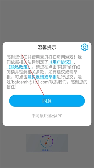 1、进入【宝贝打扫房间】前,需先阅读【用户协议】与【隐私政策】,随后选择相应操作,如有建议可通过【意见反馈或举报】渠道提交。