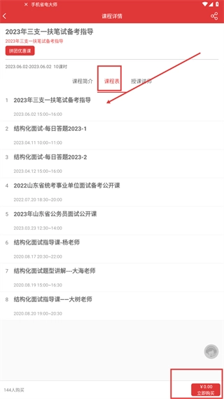 4、进入课程详情页后,切换到【课程表】标签页,就能查看课程的具体安排;确认无误后,点击【立即购买】按钮,即可完成课程的购买与获取流程。