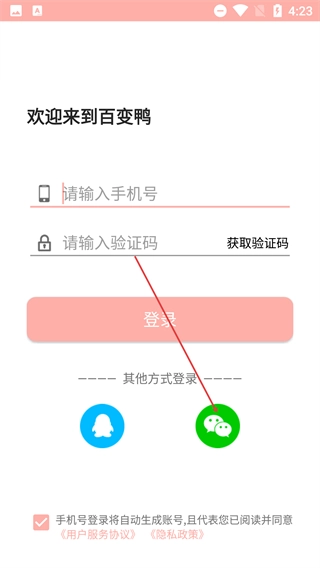 在登录页面,用户可以选择【微信】等第三方登录方式,无需填写任何信息就能快速完成账号登录操作。
