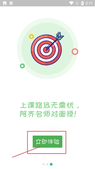 进入该界面后,若看到“上课路远无需忧-阿齐名师对面授”的提示,点击“立即体验”按钮即可开启对应的服务。