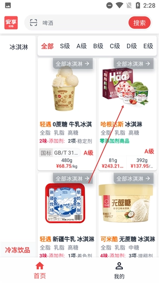 2、在冷冻饮品列表里找到想要的商品(比如“哈根达斯冰淇淋”),点击进入该商品的详情页。