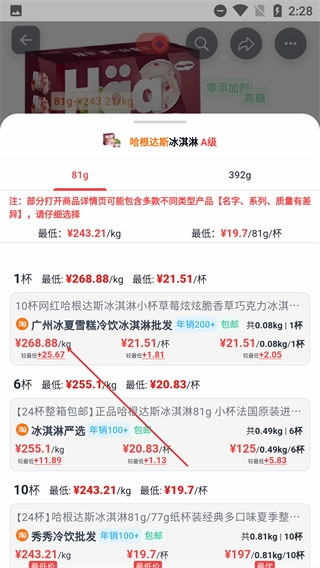 4、进入规格选择页面后,依据自身需求挑选对应的包装规格(例如81g/杯)以及商家,从而完成商品的选购步骤。
