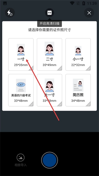 2、在证件照尺寸选择界面,选择【一寸-25*35mm】这一尺寸选项,即可进入相应的证件照制作页面。